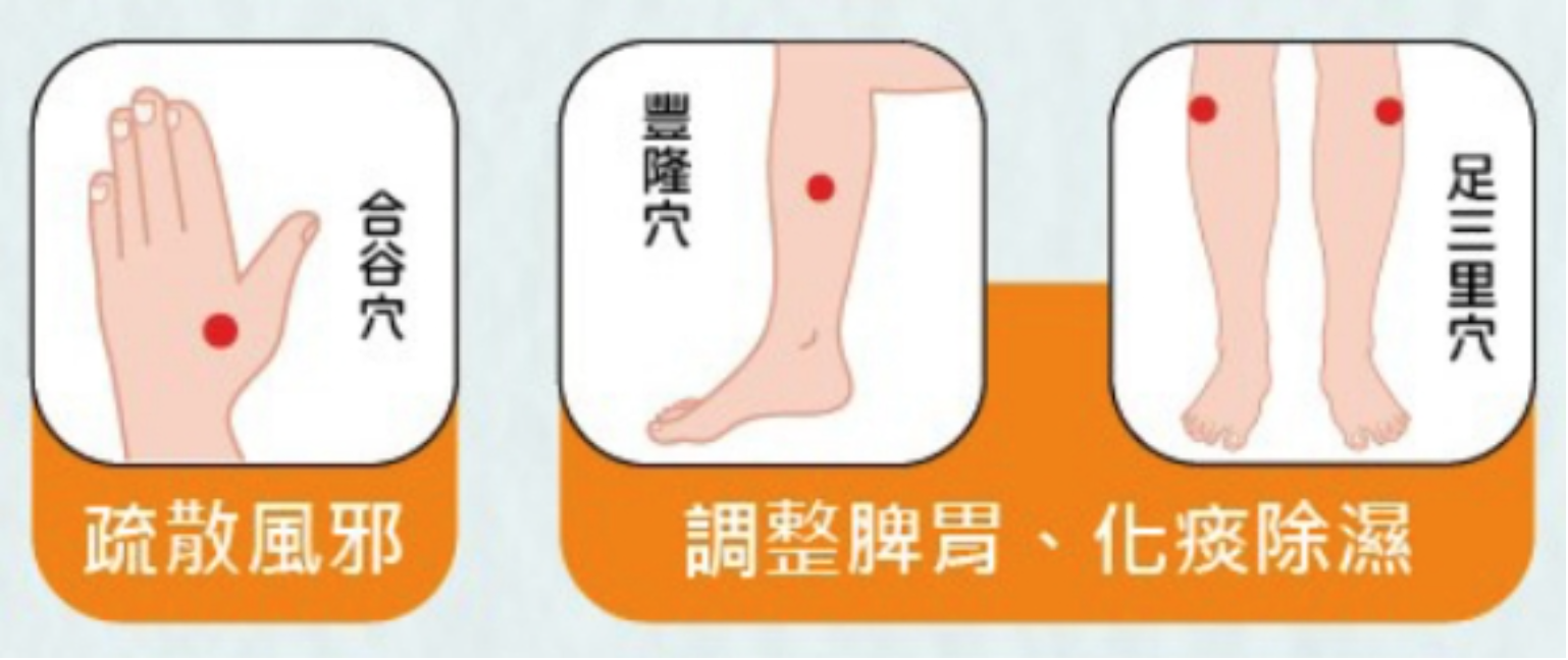 大拇指或食指指節,按壓三分鐘。 功效:調和胃氣,化痰濕。